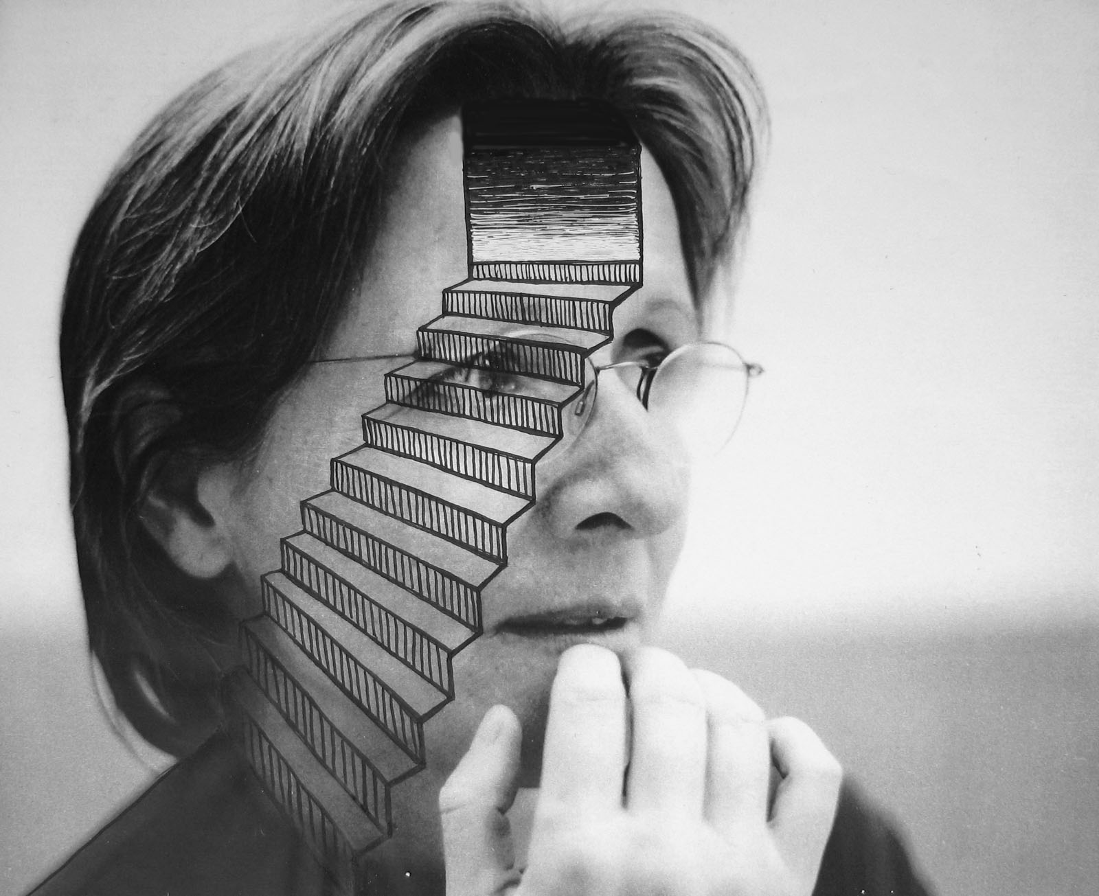 2002 Pensando. Fotografía, plumilla y tinta china 29x39cm